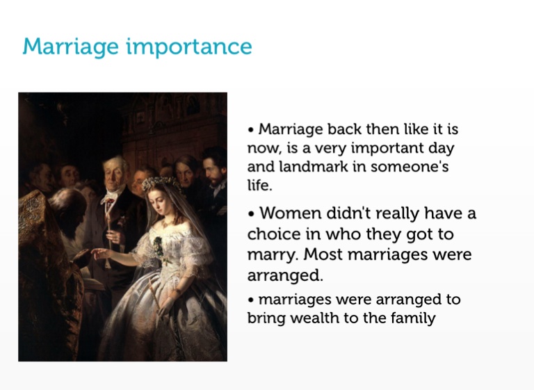• Women didn't really have a choice in who they got to marry. Most marriages were arranged.