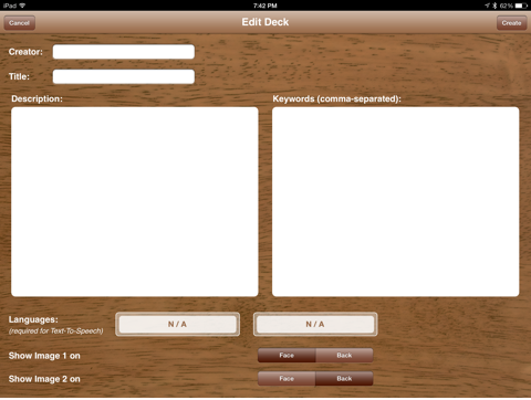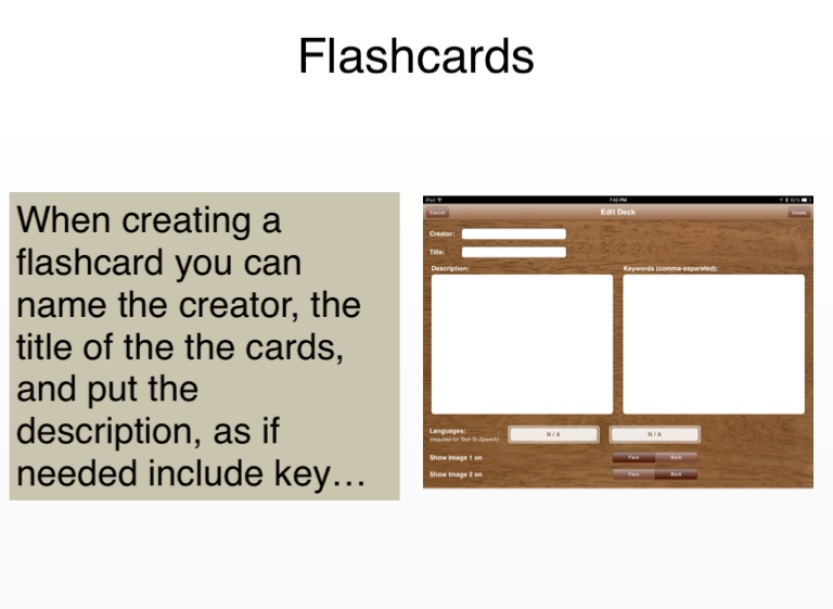 When creating a flashcard you can name the creator, the title of the the cards, and put the description, as if needed include key words.