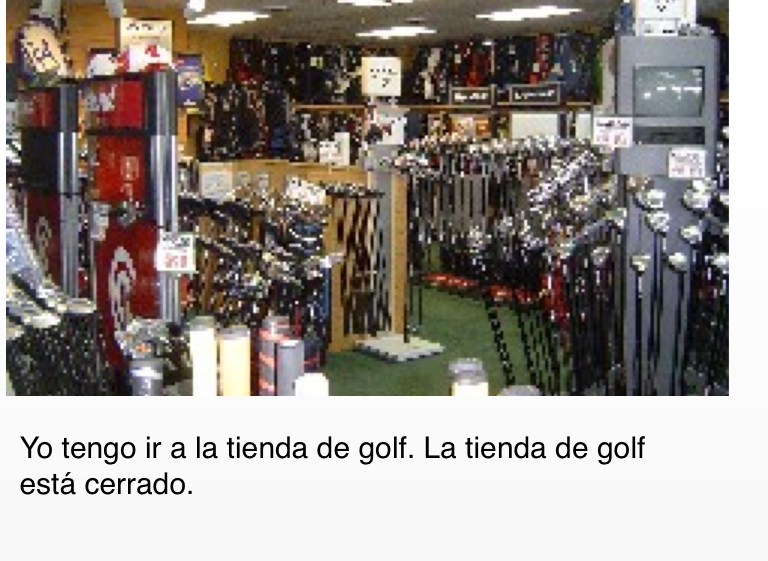 Yo tengo ir a la tienda de golf. La tienda de golf está cerrado.