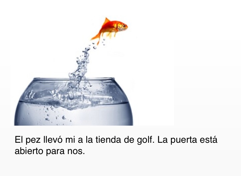El pez llevó mi a la tienda de golf. La puerta está abierto para nos.