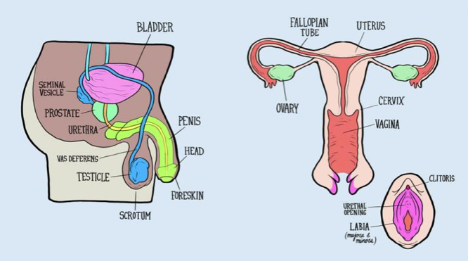 Reproductive System- (for male) includes Prostate gland, Penis, Ductus deferens, Testis, Scrotum. (for female) Mammary gland, Ovary, Uterus, Vagina, and Uterine tube. The overall goal of this system is to reproduce offspring through the mating of male and female.