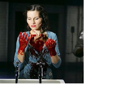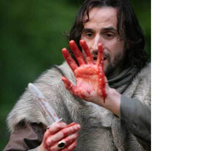 When Macbeth comes back to his room, Lady Macbeth forces him to get into his pajamas so they don't look suspicious. They start to hear knocking at the door and Macbeth becomes extremely paranoid.