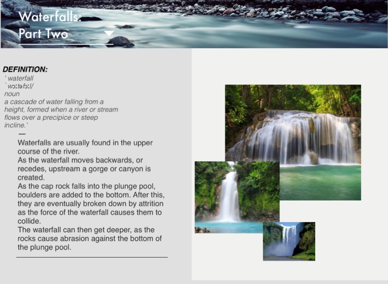 Waterfalls are usually found in the upper course of the river.