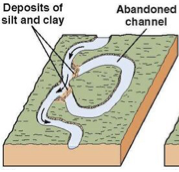 During a flood, the neck of the river has been broken by the flood water. Silt and clay have built up and left the channel abandoned.