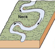 Due to hydraulic action, abrasion and erosion, the space between the curves of the meander ( known as the neck ) is becoming narrower.