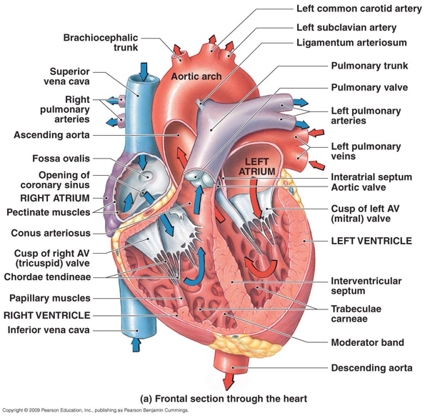 After the blood goes into the lungs it goes back to the left side of the heart. It enters through the pulmonary veins to the left atrium, then to the left ventricle them out of the aorta and inferior vena cava. (Oxygenated blood.) After it travels out the aorta to the top part of the body and gets deoxygenated. After it leaves the aorta it goes to the whole body.