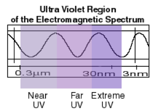 The ultraviolet wave is shorter than visible light but longer than x-rays or gamma rays.