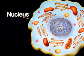 Contains nearly all the cell's DNA and with it the coded instructions for making proteins and other important molecules.