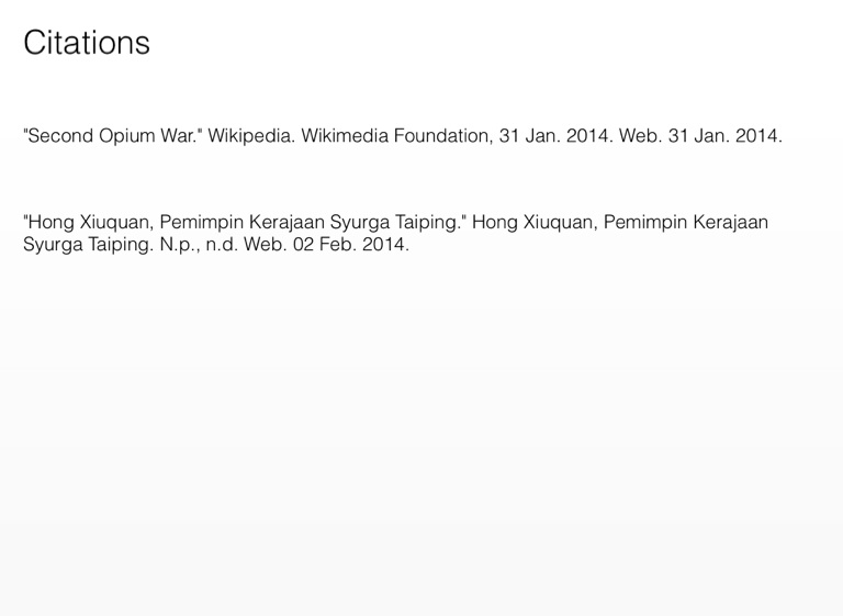 "Second Opium War." Wikipedia. Wikimedia Foundation, 31 Jan. 2014. Web. 31 Jan. 2014.