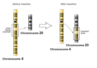 The addition of one or more nucleotide base pairs into a DNA sequence.