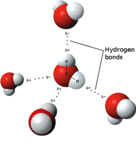 Hydrogen has partial positive and partial negative charges. Because of this they can attract eachother. When they are attracted to eachother they form droplets. When the hydrogen bonds the hydrogen molecules bond to the oxygen molecules.