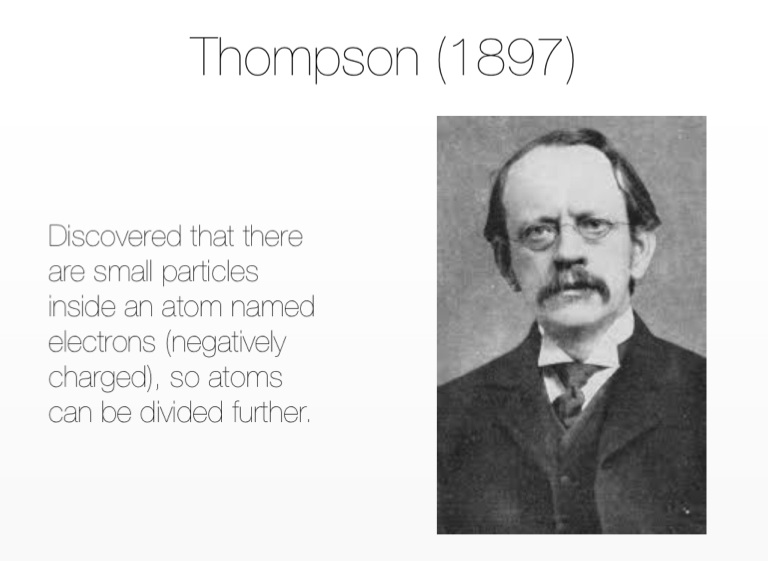 Discovered that there are small particles inside an atom named electrons (negatively charged), so atoms can be divided further.