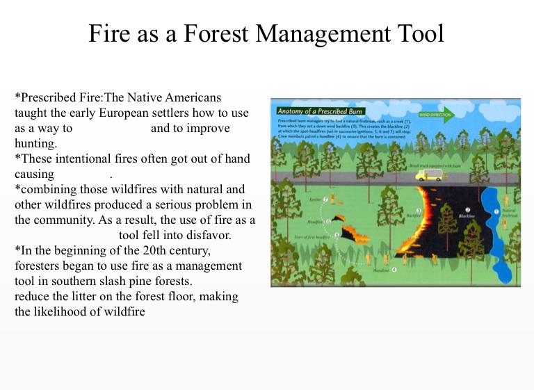 *In the beginning of the 20th century, foresters began to use fire as a management tool in southern slash pine forests. reduce the litter on the forest floor, making the likelihood of wildfire