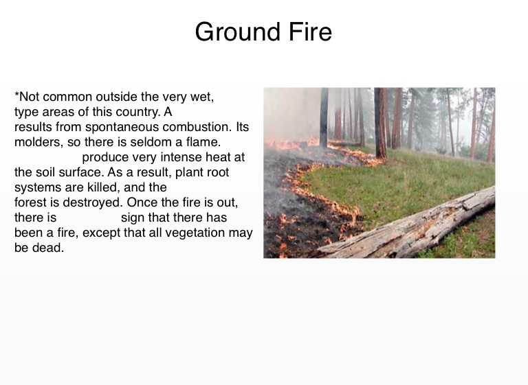 produce very intense heat at the soil surface. As a result, plant root systems are killed, and the forest is destroyed. Once the fire is out, there is sign that there has been a fire, except that all vegetation may be dead.
