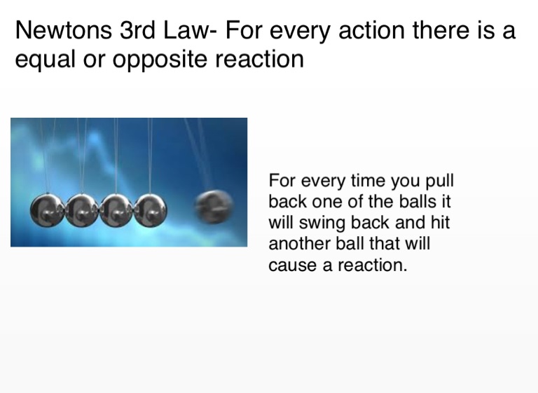 Newtons 3rd Law- For every action there is a equal or opposite reaction
