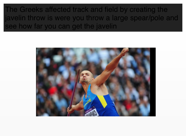 The Greeks affected track and field by creating the javelin throw is were you throw a large spear/pole and see how far you can get the javelin