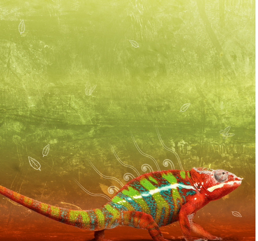 Souvent, les mâles sont plus agressifs entre eux. Le combat peut durer plusieurs minutes pour conquérir un territoire ou s'accoupler avec une femelle. Le caméléon change de couleurs pour des objectifs d'attaque ou de défense selon l'espace où il se trouve. En saison d'accouplement le mâle