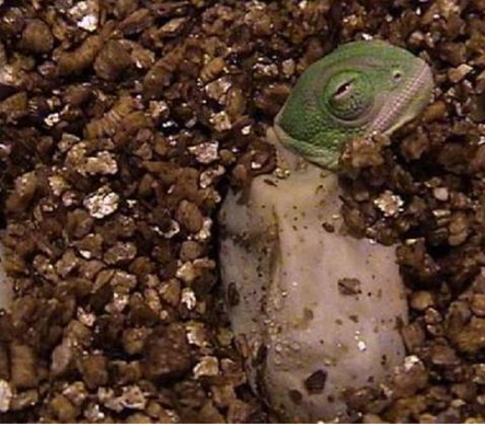La femelle pond de 20 à 30 oeufs qu'elle enterre dans le sol. Quelques espèces de caméléons les gardent dans le ventre de la mère jusqu'à leur éclosion. Après l'accouplement, dépendant de la température, peut durer de 6 à 9 mois.