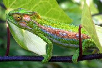 Dès sa naissance le bébé grimpe dans un arbre et s'occupe à manger. A l'âge de 18 mois le petit est un adulte et s'accouplera à son tour. La durée de vie du caméléon varie entre 4 et 8 ans.