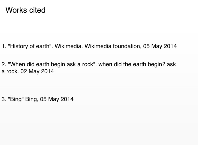 1. "History of earth". Wikimedia. Wikimedia foundation, 05 May 2014
