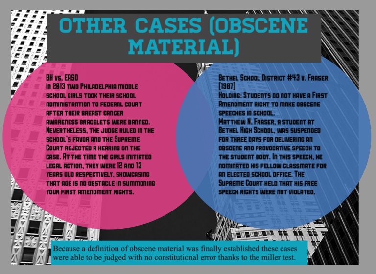 Because a definition of obscene material was finally established these cases were able to be judged with no constitutional error thanks to the miller test.