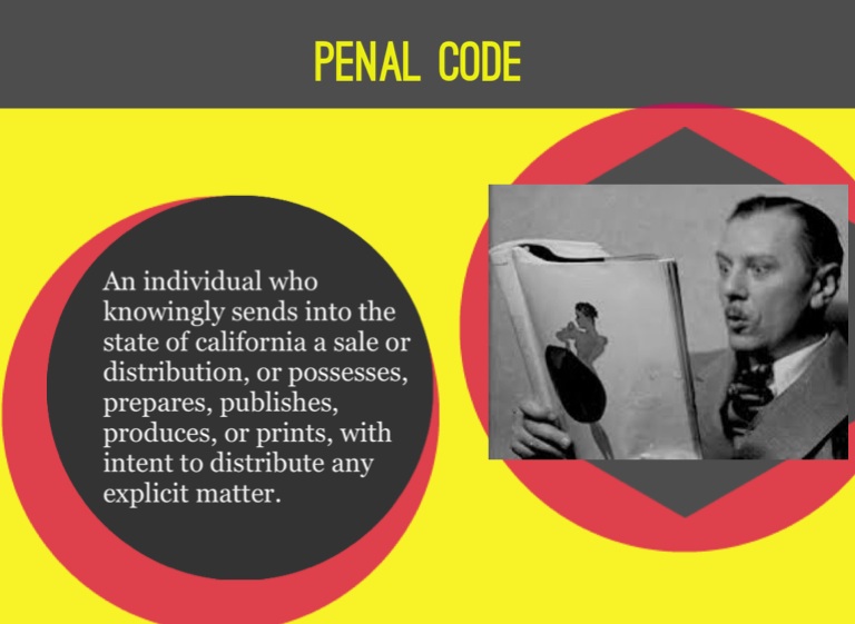 An individual who knowingly sends into the state of california a sale or distribution, or possesses, prepares, publishes, produces, or prints, with intent to distribute any explicit matter.