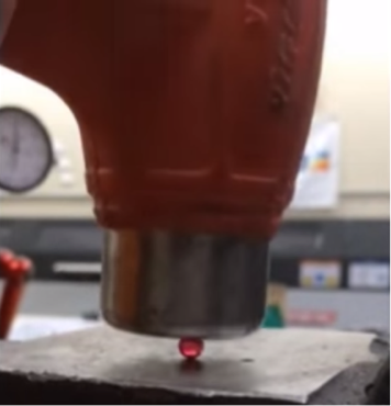 That's a ruby smashed between the steel top of my bench-vise and a 16oz. dead blow hammer. Yes, I hit it really hard. Yes, it did break. It's tough…not indestructible. Just treat it like a ruby and you should be fine. If you treat it irresponsibly…it will break, as demonstrated above :)