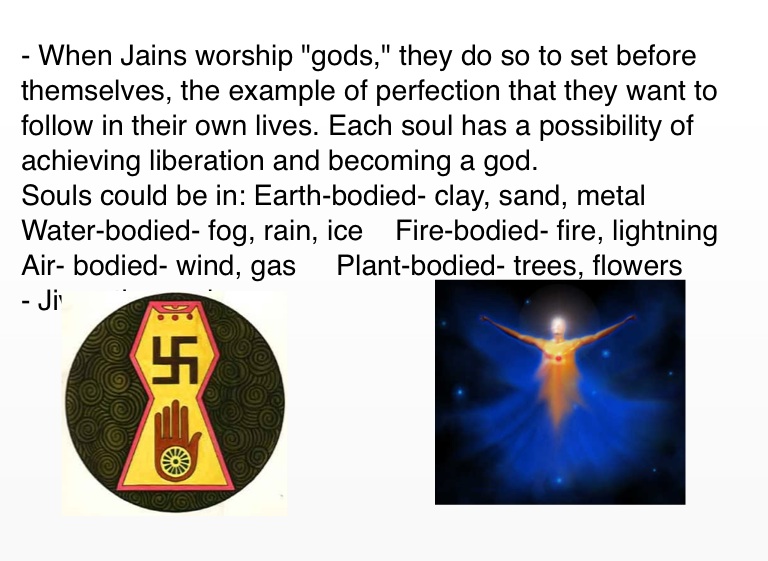 - When Jains worship "gods," they do so to set before themselves, the example of perfection that they want to follow in their own lives. Each soul has a possibility of achieving liberation and becoming a god.