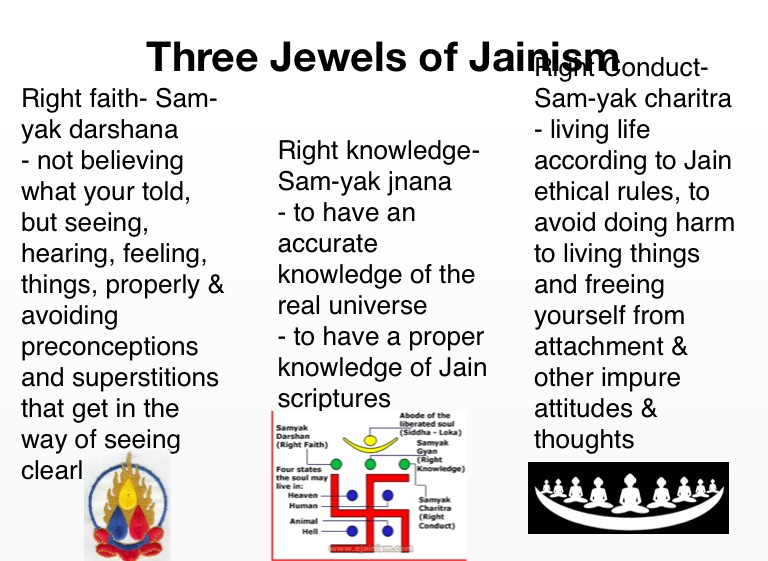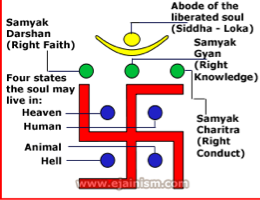 - living life according to Jain ethical rules, to avoid doing harm to living things and freeing yourself from attachment & other impure attitudes & thoughts