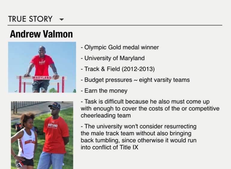 - The university won't consider resurrecting the male track team without also bringing back tumbling, since otherwise it would run into conflict of Title IX