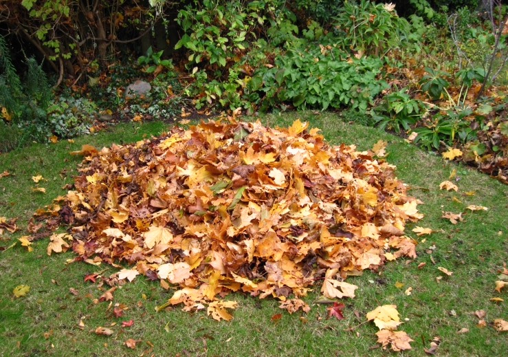La galera terrateníente en una pila de las hojas. La galera volverse está cubierto.
