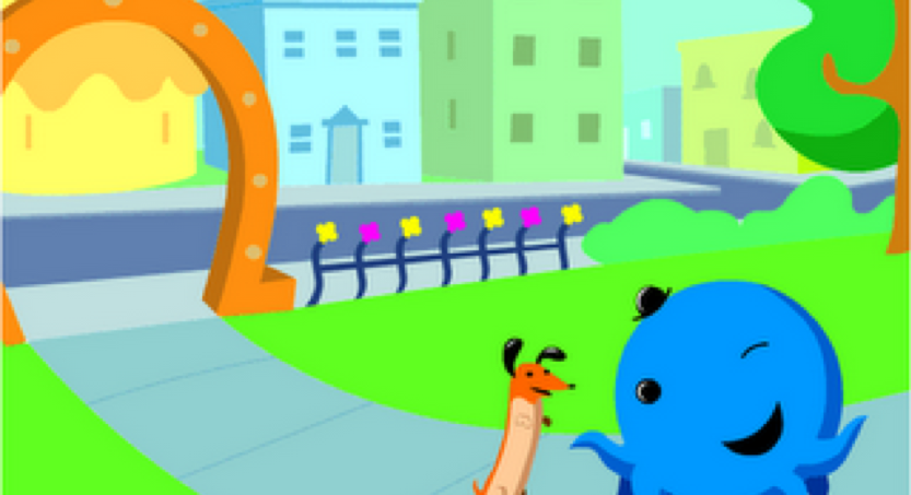 Él lleva la galera a la parque. Él corre y juega con su perro.