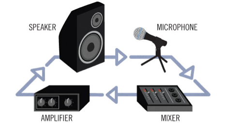 A feedback loop occurs because of a reverberation of sound that travels through the full circuit of parts within the audio equipment continuously.
