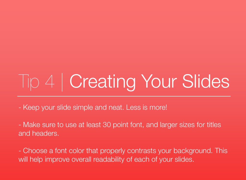- Choose a font color that properly contrasts your background. This will help improve overall readability of each of your slides.
