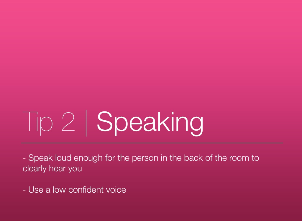 - Speak loud enough for the person in the back of the room to clearly hear you