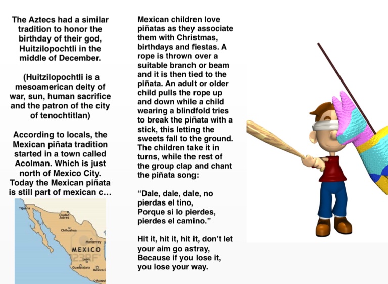 According to locals, the Mexican piñata tradition started in a town called Acolman. Which is just north of Mexico City. Today the Mexican piñata is still part of mexican culture.