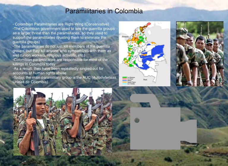 -The Colombian government used to see the guerrilla groups as a larger threat than the paramilitaries, so they used to support the paramilitaries (trusting them to eliminate the guerrilla groups)