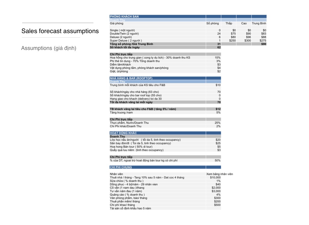 Sales forecast assumptions