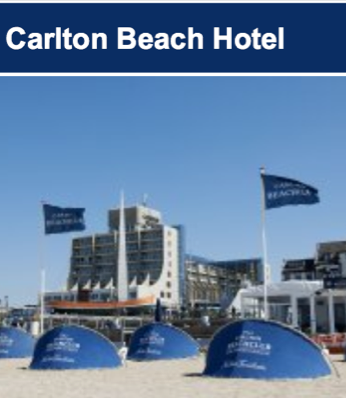De kamers van Carlton Beach Hotel hebben eentelevisie, telefoon, gratis draadloos internet, minibar, airconditioning, bureau, koffie- en thee, kluisje en een badkamer met douche, föhn en toilet. De kamers beschikken ook over een balkon met zitje. Gemiddeld krijgt het hotel een 8,3