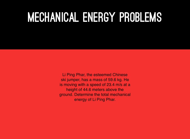 Li Ping Phar, the esteemed Chinese ski jumper, has a mass of 59.6 kg. He is moving with a speed of 23.4 m/s at a height of 44.6 meters above the ground. Determine the total mechanical energy of Li Ping Phar.