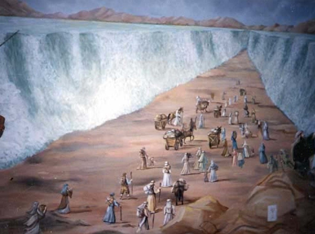 Prophet Moosa realized these people wouldn't change so he gathered the people of Bani Israa'eel and left for Palestine as Allah ordered. Fir'aun learned about their escape and followed them with a huge army. When the Bani Israa'eel reached the Red Sea they saw Fir'aun approaching and were about to give up. However, Prophet Moosa called to Allah and struck the waters of the sea with his stick and the waters parted, making a dry path. The people rushed through and crossed safely. When Fir'aun saw the path he entered the sea at the head of his army. But while he was in the middle of the sea the waters suddenly closed around him and his men and he died while saying he believed in The Lord of Musa. But it was too late.