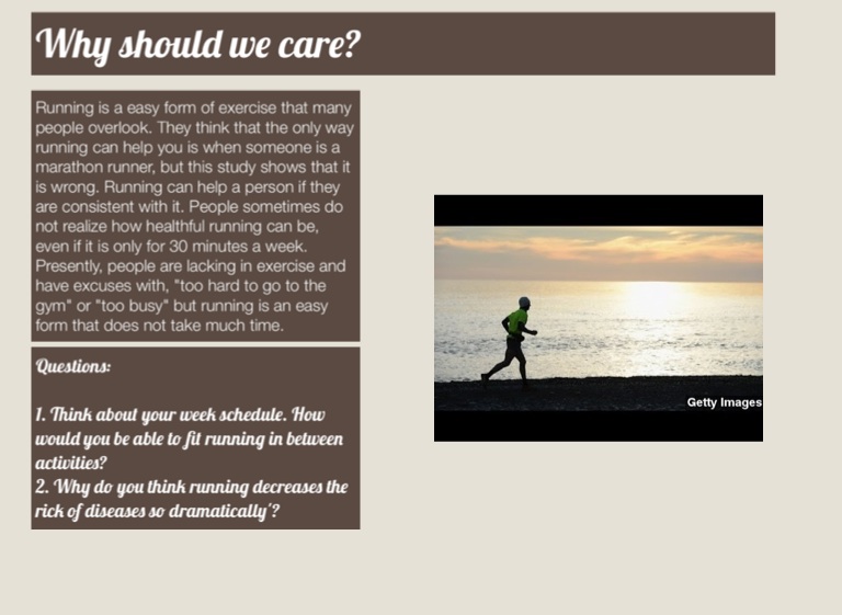 2. Why do you think running decreases the rick of diseases so dramatically'?