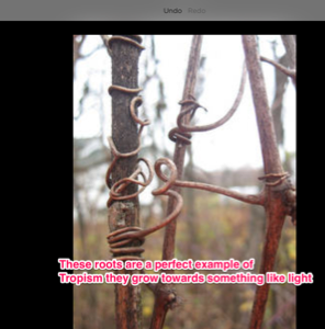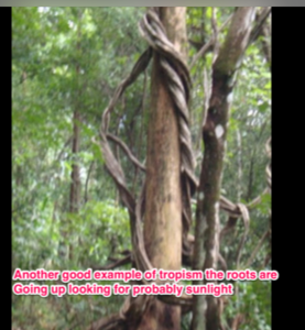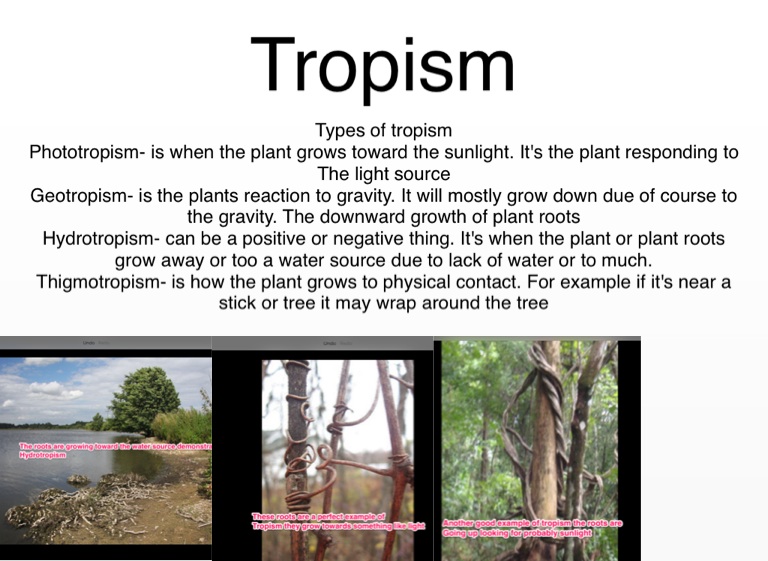 Hydrotropism- can be a positive or negative thing. It's when the plant or plant roots grow away or too a water source due to lack of water or to much.