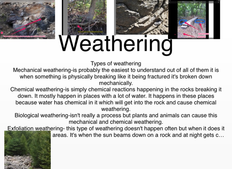 Mechanical weathering-is probably the easiest to understand out of all of them it is when something is physically breaking like it being fractured it's broken down mechanically.