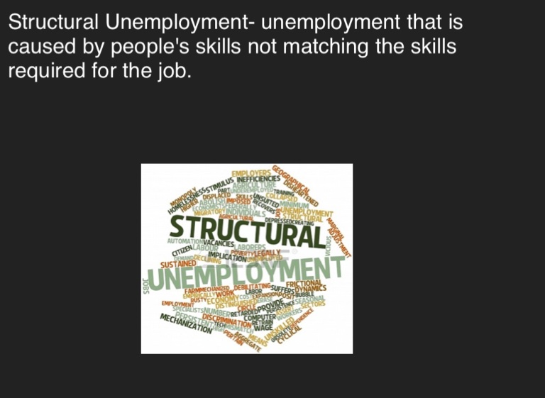 Structural Unemployment- unemployment that is caused by people's skills not matching the skills required for the job.