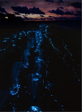 The water luminescence is triggered by dinoflagellates, oceanic plankton which is able to generate an emerald green and ultramarine illumination when water is physically disturbed. Dinoflagellates are incredibly delicate microorganism.
