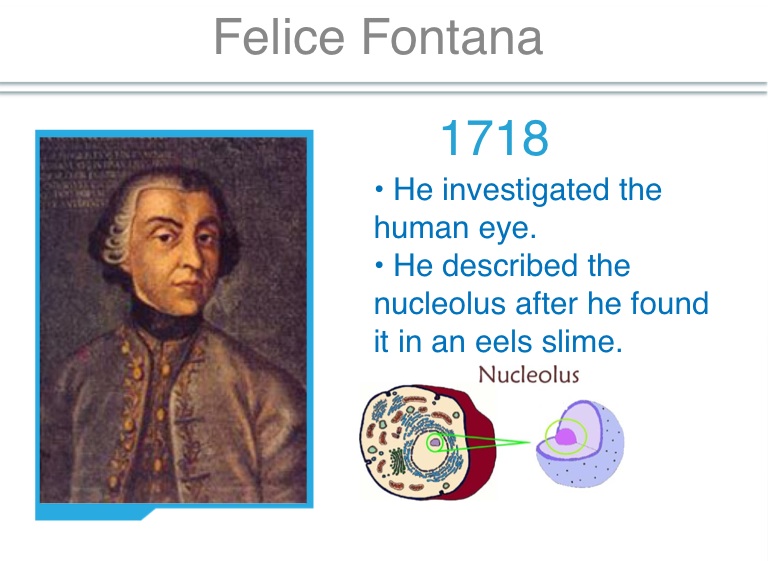 • He described the nucleolus after he found it in an eels slime.