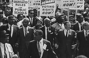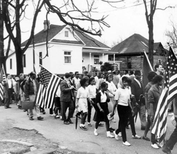 People lining the streets during the civil rights movement demanding what they believe in.