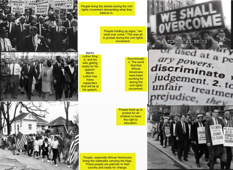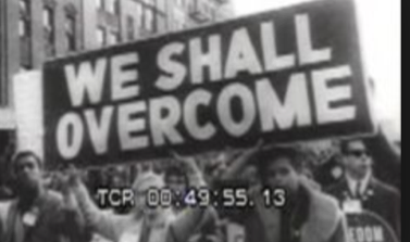 People holding up signs, "we shall over come." This was all in protest during the civil rights movement.