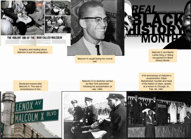 Graphics and reading about Malcolm X and his assignation.